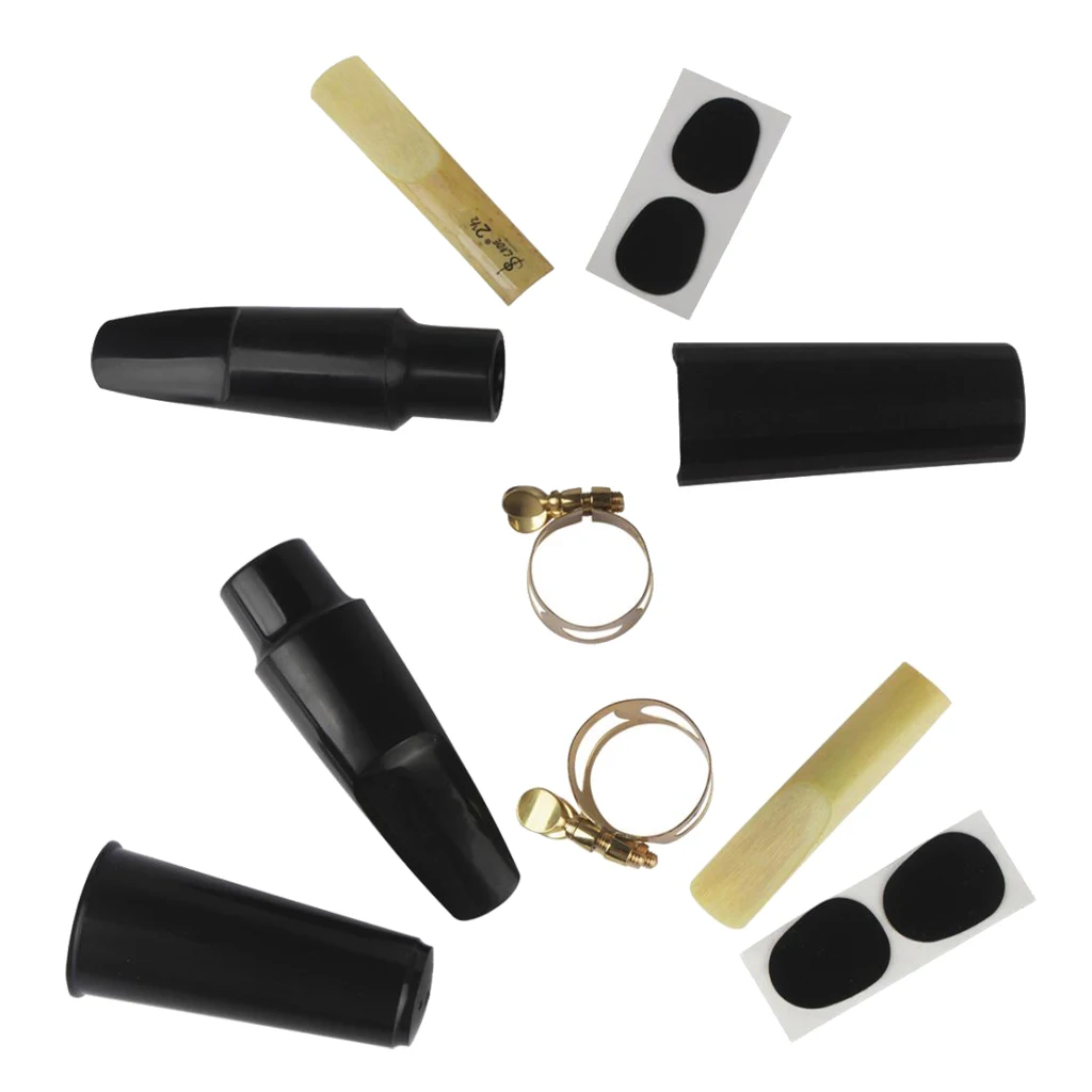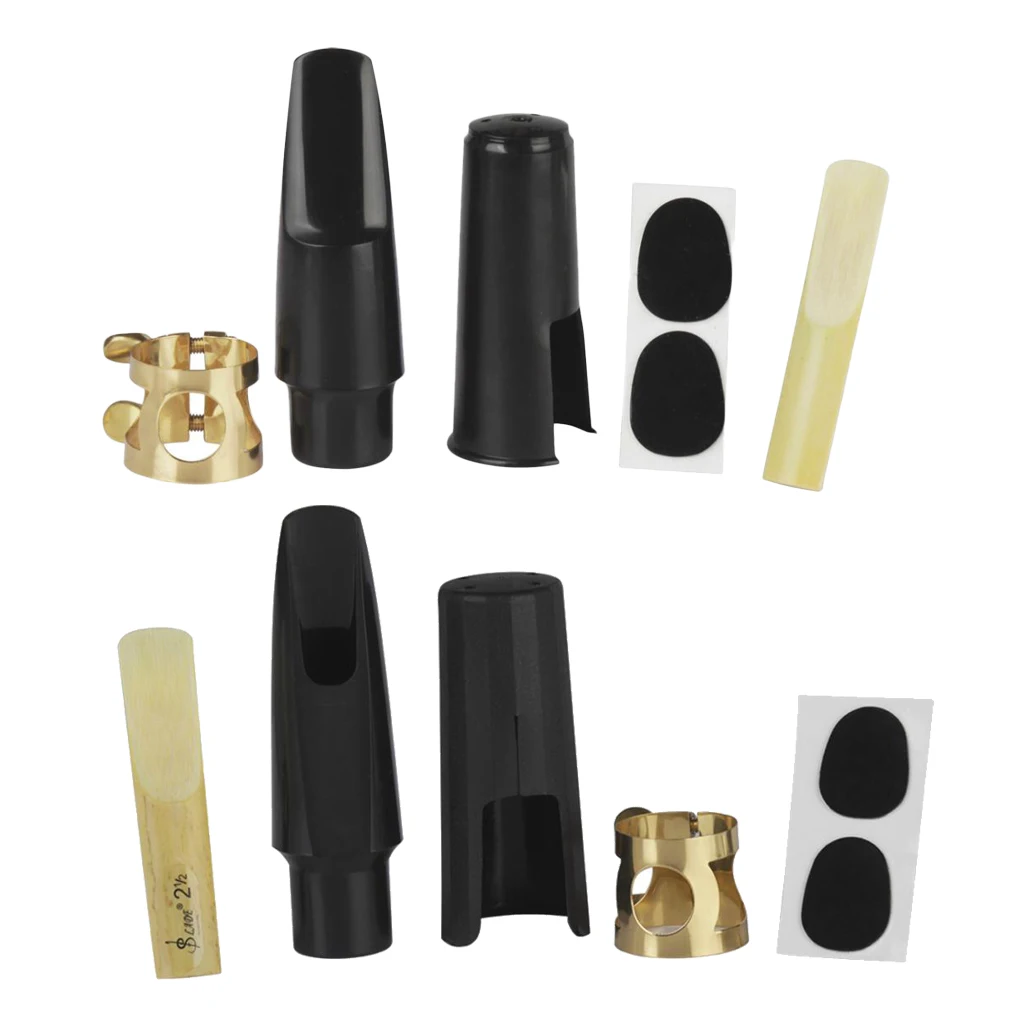 2 Sets ABS Saxophone Sax Mouthpiece with Mouthpiece Patches Pads Ligature Reed Cap Wind Instrument